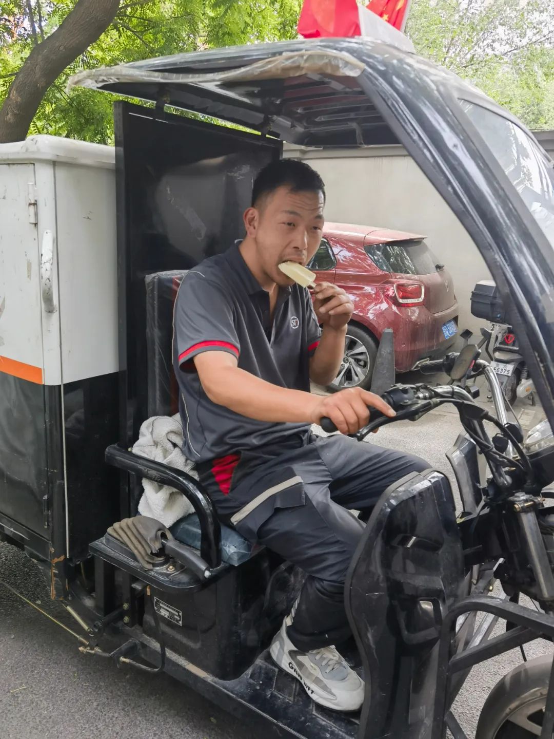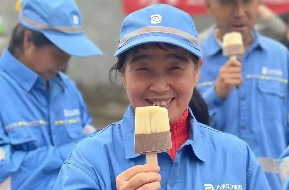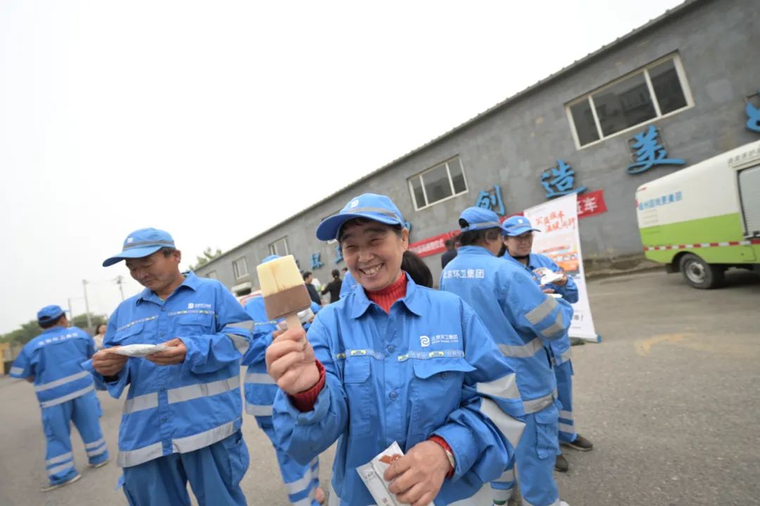爱心企业为一线环卫代表赠送雪糕!拿到雪糕的环卫工人们满脸喜悦,品尝着丝丝香甜的雪糕,感受着工会组织和爱心企业的暖暖心意!